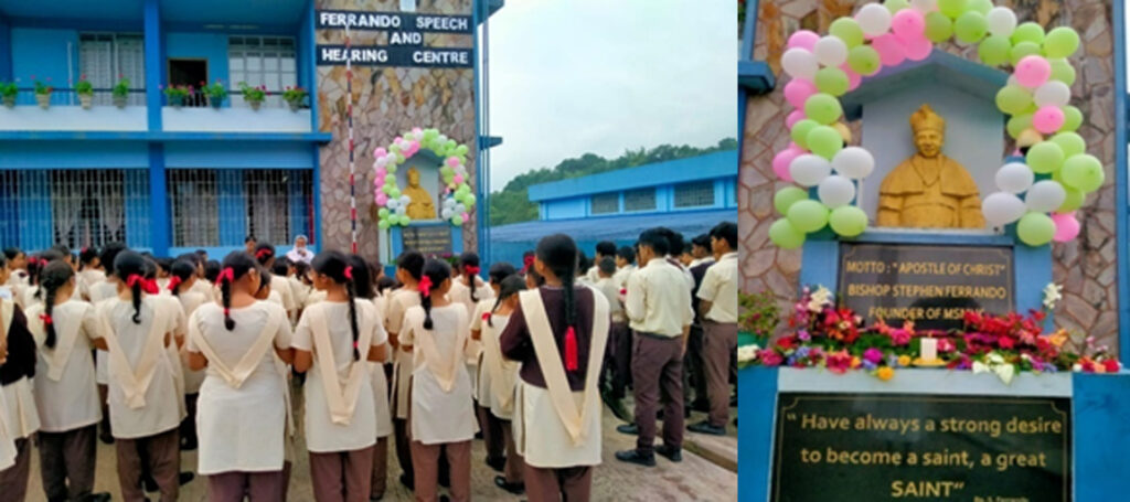 The students and staff gathered near the portrait of the Late Bishop Stephen Ferrando in honour of his 47th death anniversy during the monring assembly. While the founder’s theme song was played, some students and teachers paid homage to the portrait by offering flowers. This was followed by a communal prayer, seeking favors through the intercession of Bishop Stephen Ferrando. The special intention of the prayer was to find benefactors to support the construction of a parking lot and boundary wall. The observance concluded with school Anthem and distribution of sweets, after which everyone proceeded to their classrooms.