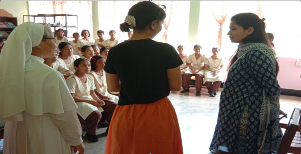 ADC from Nongpoh came to visit Ferrando Speech and Hearing Centre. She met the gilrs students of classes VII to XII to get the feed back about the sanitary pad they had given on the month of march. The students shared their advantage and Disadvantage of using it.